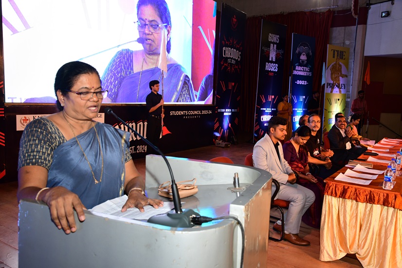 The inaugural ceremony of "Chronos 2024" – the interclass competition of Kasturba Medical College Mangalore, was held on the 21st of March, 2024, at 6:00 PM, at the Dr. T.M.A. Pai International Convention Centre, Mangalore. The Chief Guest for the evening was Dr. Jacintha D'Souza, the District Surgeon of District Wenlock Hospital, Mangalore. In her address, Dr. D'Souza underscored the importance of balancing extracurricular and cultural activities with academic pursuits. She fondly recalled her own experiences with interclass programs during her tenure at KMC Mangalore, highlighting the lasting impact they had on her professional and personal development.