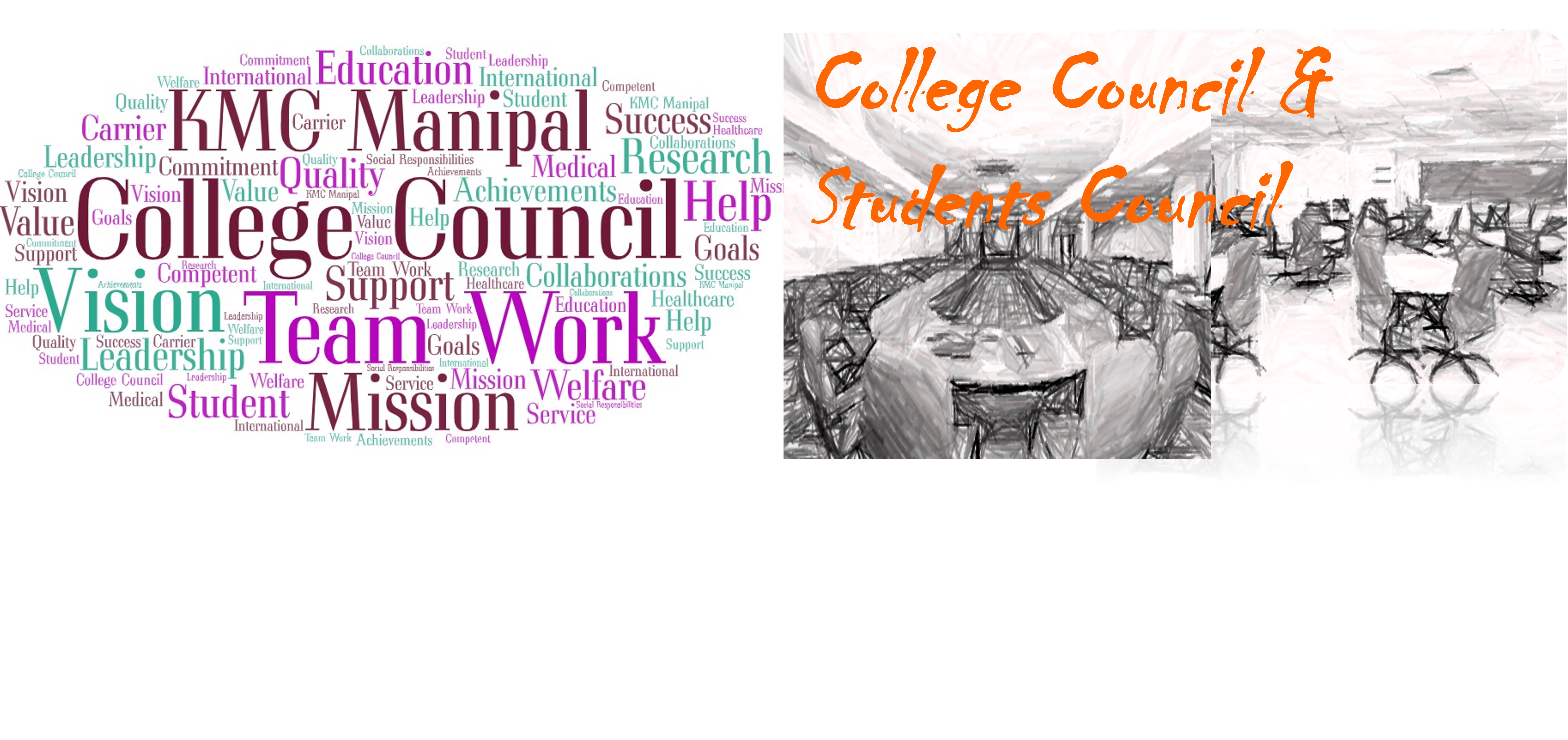 Kasturba Medical College Manipal has a College Council comprising of the Heads of departments as members and Principal/Dean as Chairperson. The council also includes Medical Superintendent, Asst. medical Superintendent and various coordinators under the college. The Council meets regularly on the 3rd Thursday of every month to discuss important issues related to curriculum, training programs, policy changes, etc. During this meetings issues related to NMC inspections, accreditations, research, and event calendar for the year also will be discussed. The meeting is also attended by representatives from students and postgraduates.