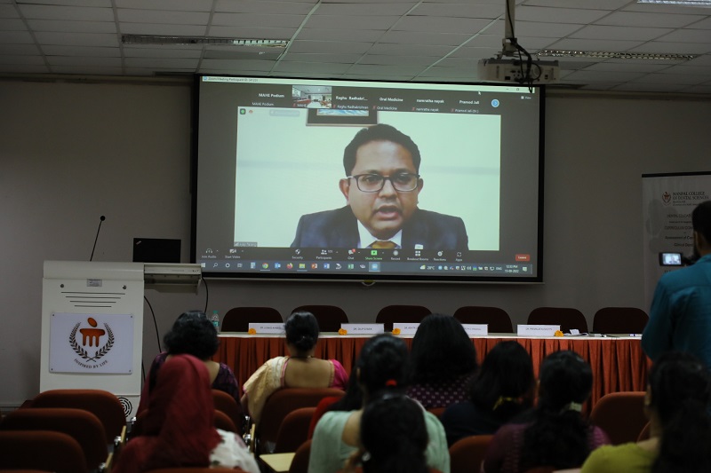 Dr. Ciraj, Director of FAIMER institute and Coordinator of CCEID, Manipal Academy of Higher education, introduced the participants to the basics of "competency" under the Competency based education system. He emphasized the methods to develop assessment framework based on competencies.  The assessment of the highest order of "what learners can do?" is to be designed, keeping the crucial competencies needed for the profession.  Prof. Ciraj also touched upon the role of competency domains (lifelong learning, communication, teamwork), degree of assessment, and alignment with the type of teaching that defines the professional identity of the dentist.