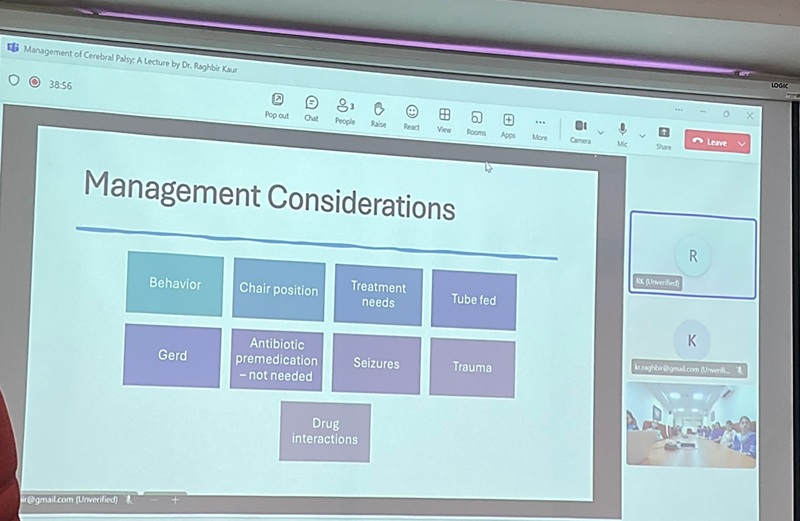 The Department of Pediatric and Preventive Dentistry, Manipal College of Dental Sciences, Mangalore conducted an online lecture session by adjunct faculty, Dr. Raghbir Kaur, Director, Pediatric Dental Services and Associate Director, Pediatric Dental Residency Program at NYU Langone Health, USA, for faculty and post graduate students of the department of Pediatric and Preventive Dentistry. The topic was “Management of Cerebral Palsy”, where the oral manifestations and treatment considerations were discussed. This was followed by an interactive question answer session.