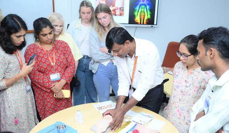Dr. Elsa Sanatombi Devi, Professor and Centre Coordinator, spoke her heart into a life healing experience using emotional freedom technique – guiding participants through a journey of self-healing and transforming emotions into a healing experience while dealing with end of life care. Healing with empathy, free from feelings truly resounds the real stories of both the patient and the caregiver who are the hidden patients. Participants had the opportunity to experience hands on unique demonstration of wound care led by Mrs Janet Alva, Mr Prasannakumara, Shreenidhi Jogi and Ms Effienia D Wahlang. The SDGs involved are Good Health and Well-being (SDG 3) and Quality Education (SDG 4).