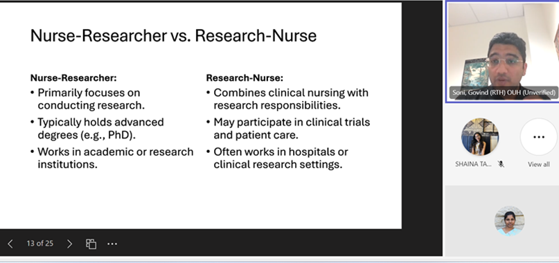 Mr. Govind Soni, Database Manager (NMO & CMS) at Oxford Hospitals, NHS Hospital Trust, Oxford, and Alumnus of MCON Manipal (BSc Nursing 2014–2018 batch), spoke on the different job opportunities in nursing as well as preparedness for a future career. He also narrated how to change the patients’ lives. He encouraged the students to network with various departments and take full advantage of the resources MAHE offers. A total of 92 students and six faculty members attended the session. Participants clarified their doubts regarding higher education opportunities in data science.