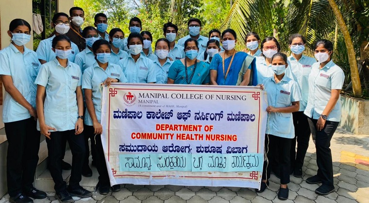 Second Year BSc Nursing students (Batch-IV) along with the faculty, Department of Community Health Nursing, MCON, MAHE, organized an awareness program on general safety measures on 20th January 2022 at 11 am in Patla.