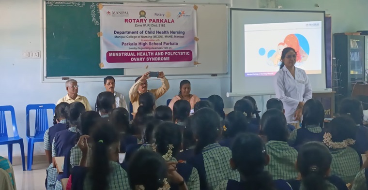 The Department of Child Health (Paediatric) Nursing, Manipal College of Nursing (MCON), Manipal Academy of Higher Education (MAHE), Manipal, in collaboration with Rotary Club, Parkala, hosted an awareness talk on “Menstrual Health and Polycystic Ovary Syndrome (PCOS) at Parkala High School, Parkala, Udupi District, Karnataka, on 1st October 2024, between 2.00 p.m. and 4:00 p.m in recognition of PCOS awareness month. The session aimed at raising awareness among high school students and faculty members on the significance of maintaining menstrual health for promoting health and preventing illness in the future.