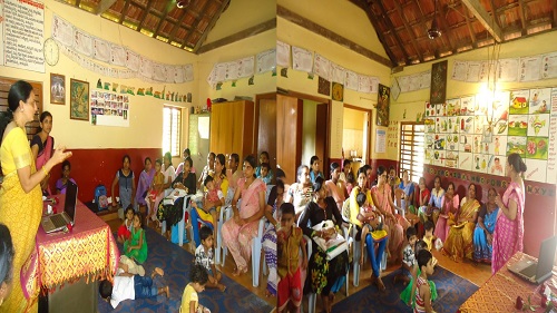 To enhance peer support for breastfeeding and encourage peer counselling, a training session on breast feeding, its importance and how to promote breast feeding in family and community was taken by Mrs Yashoda Sathish and Mrs. Binu Margaret for women of Srisakthi group, Udupi on 6th August 2017. Eight mothers participated in the session and showed their interest to counsel other mothers on the importance of breast feeding and the positioning techniques. The session was interactive and the mothers appreciated the initiative and were willing to do peer counselling.