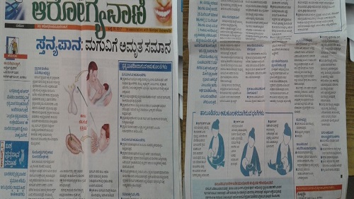 To bring awareness among the public, a newspaper article on “Breast feeding is the best feeding for the baby” was published in ‘Udayavani’ Kannada daily newspaper on 30th July 2017. This article was written by Dr. Maria Pais Assistant Professor, Department of Obstetrics and Gynaecological Nursing, Manipal College of Nursing Manipal. The main emphasize of the article was on the importance of breast feeding, breastfeeding technique and its advantages to mother, baby and the society.