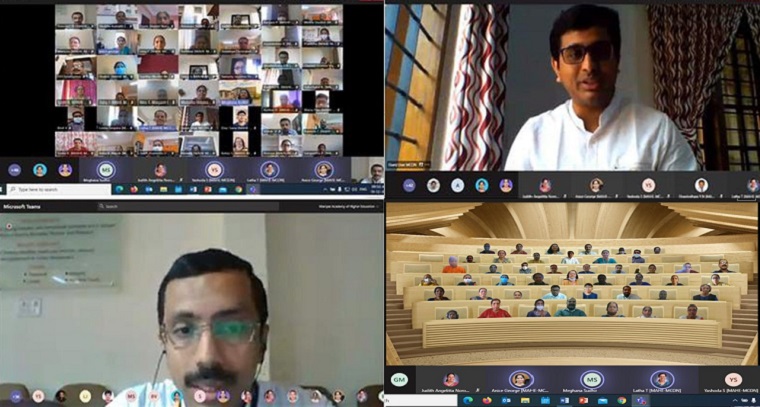 Mr Linto Andrews during his session on simulation-based competency assessment spoke on Simulation as a technique that promotes experiential and reflective learning and can also be used as a teaching and evaluation tool. He also highlighted on different models of simulators that can mimic varied student learning experience. He also explained that simulation-based learning promotes patient safety, offers opportunities to practice and acquire clinical skills, and provides students to experience a safe learning environment. Mr Linto Andrews also stressed on the importance of debriefing its steps, process, types that encourage reflective practices of students. Developing simulation scenarios is one of the significant steps of teaching-learning activity. The session was followed by department wise group activity on developing case scenarios for simulation in breakout rooms of MS Teams, which were later presented with final modifications from experts. A total of 55 participants attended the session.