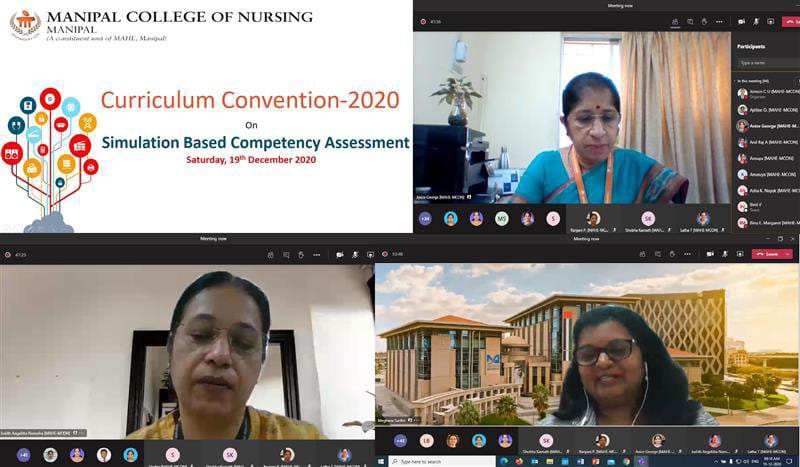 Amidst the current Covid-19 pandemic, most of the health professional students are physically distant from the classrooms that has considerably changed the dynamics of the education system. In order to develop the clinical competence among students, simulation has emerged as a promising teaching strategy that facilitates the learning of students considering current and future challenges. Curriculum convention is one of the deliberate effort put forth by the Excellence in Education team of MCON, Manipal, to empower learning experiences of students and enrich teaching methods of faculty in order to cater to the growing needs and demands. Manipal College of Nursing, MAHE, Manipal organized a virtual curriculum convention on Simulation-Based Competency Assessment through MS Teams platform on 19 December 2020. Mrs Meghana Sudhir, Simulation Educator, Institute for Excellence in Health Professions Education, MBRU, Dubai, UAE was the Chief Guest. She emphasized the importance of simulation in teaching-learning experience and highlighted the purposes of simulation which includes education, assessment, research and health integration in facilitating patient safety. She also sensitized the group on team-based simulation and curriculum integration of simulation.