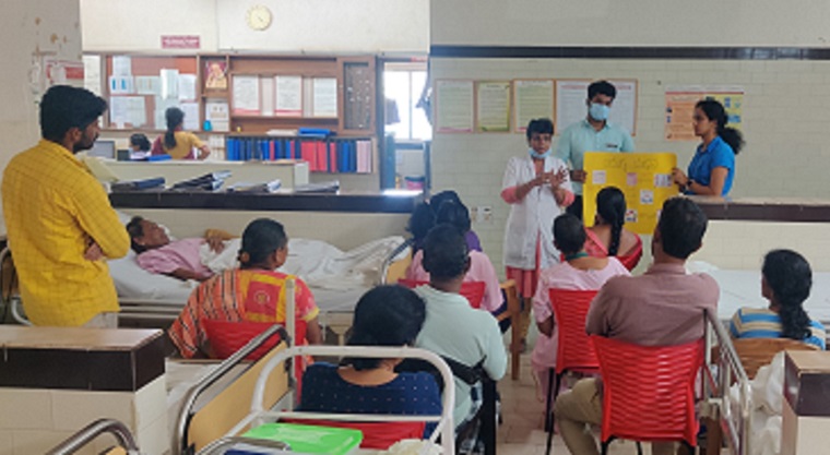 As part of the ‘AAROGYA BHODHANA’ program, the students of MCON Manipal along with the faculty coordinator taught inmates of the oncology ward of Kasturba Hospital Manipal, and their family members about care during the treatment of breast and uterine cancer. A total of 15 beneficiaries participated actively and clarified their doubts. It was an interactive and interesting session and inmates and family members expressed that it was highly useful.