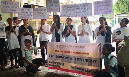 The students from Manipal College of Nursing conducted an eye donation awareness street play on the theme ‘Vision- God’s Most Precious Gift to Mankind’. Through songs, dance and narrations, students perfectly narrated and depicted on who can donate eye, importance and need for eye donation, whom to contact and how it can change the life of an individual and thus students tried to increase the awareness of general public on eye donation.