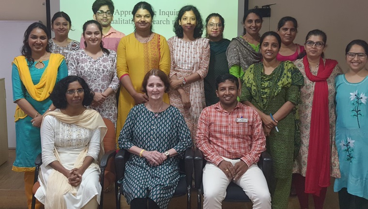 Dr. Toni Bewley, a senior teaching fellow at Edgehill University, UK, and an adjunct faculty of Manipal College of Nursing, addressed the PhD scholars on a qualitative research method, Appreciative Inquiry (AI), on January 15, 2024, at 10:30 AM.