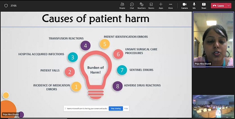 Department of Medical-Surgical Nursing, Manipal College of Nursing, Manipal organized a Guest Lecture on “Patient Safety” on May 09, 2022, between 3.00 pm to 4.00 pm to IV year BSc Nursing Internship students through blended mode. Mrs. Priya Laveena Alva, Quality Nurse, Manipal Hospital, Bangalore addressed on the topic. The session highlighted on the causes of patient harm, preventive aspects, key actions, safety goals and nurse responsibilities. A total of 98 participants including IV year BSc Nursing Internship students and faculty members of the college participated in the session.