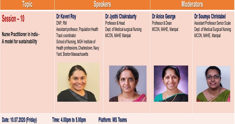 All the ten sessions gave us deep insights into arenas like, digital teaching tools for health care professionals, impact of Covid-19 on various special groups, psychological rehabilitation, patient safety, impact on education and practice, role of medical and nursing policy makers, emerging opportunities for nurses and many more, and also all were managed by experts from various fields.