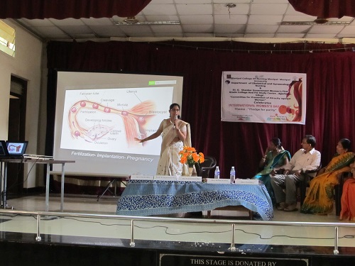 The faculty and postgraduate students of Department of Obstetrics and Gynecological Nursing, Manipal College of Nursing Manipal Academy of Higher Education, Manipal and G. Shankar Government Women’s First Grade college and post-graduation study Centre and Committee for Prevention of Atrocity against Women, Ajjarkad, Udupi observed International Women’s Day - 2016 at Lion’s Bhavan, Brahmagiri on 8th March 2016 on the theme “Pledge for parity”. Around 100 women students and faculty attended the program.