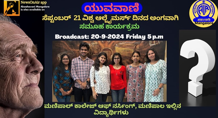 A radio program by Dr. Savitha Prabhu on raising awareness among the public and support for those dealing with Alzheimer’s disease and other dementias was recorded on 18th September in Mangalore Akashavani and will be aired on 20th September at 8.30 pm and a role play by the students of the 5th semester on Alzheimer’s Dementia will be aired on 20th September at 5 pm on NewsOnAir, Akashavani, Mangalore. The program is aligned with SDG 3 good health and wellbeing and SDG 4 quality education.