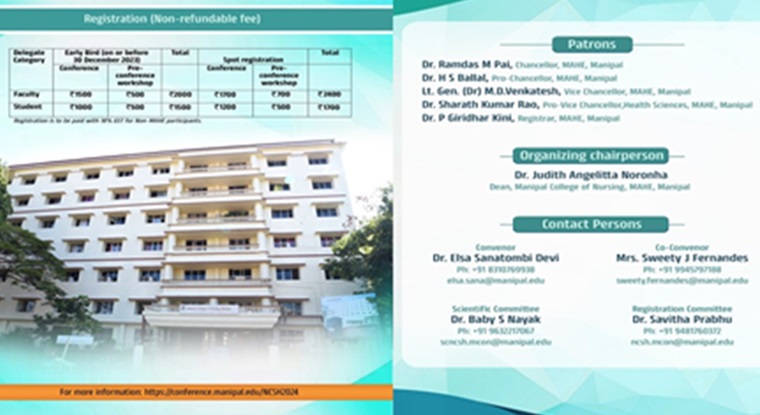Manipal College of Nursing, Manipal, MAHE, Manipal, is organizing a “National Conference on Nurse-led Developments for Sustainable Healthcare in India” from January 17 to 19, 2024.