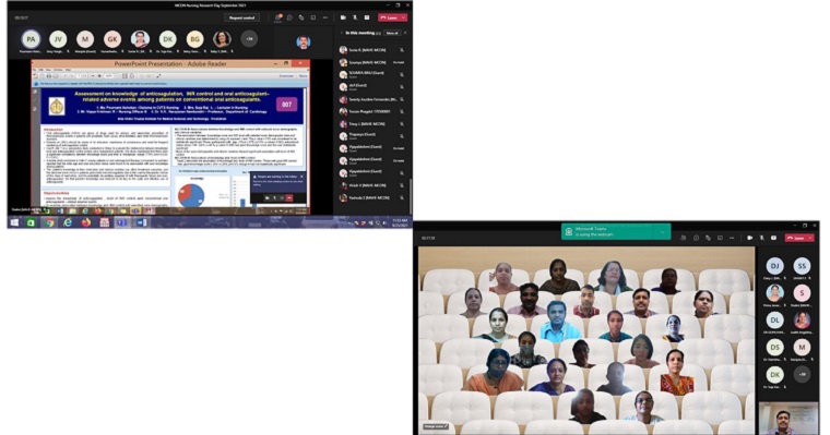 The day commenced with a welcome address and introduction of the keynote speaker by Dr Judith A Noronha, Dean, MCON, MAHE, Manipal. The keynote address on the theme - Intervention Research in Nursing Practice was delivered by Dr L Gopichandran, Associate Professor, College of Nursing, AIIMS, New Delhi. He emphasized the importance of nurses being empowered to conduct research and generate evidence to improve the quality of care as well as their professional development. Following which the participants presented their research work through the poster presentation virtually. In the afternoon innovative ideas were presented by the participants. The program concluded with the closing remarks by Dr Anice George, former Dean, MCON, Manipal, where she highlighted the need for research in nursing. The winners of the best e-posters and innovative ideas presentations were announced. The participants expressed that such events should be conducted more often as they provide a platform for knowledge enhancement and also help improve the quality of nursing care.
