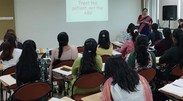 The two-day workshop began with a session on airway assessment and management by Dr Souvik Chaudhuri, Associate Professor, Dept. of Critical Care Medicine, KMC Manipal, followed by ABG interpretation by Dr Shwethapriya R., Professor, Department of Critical Care Medicine, KMC, Manipal. Dr Sagar M S Associate Professor Department of Critical Care Medicine, KMC, Manipal, took an engaging session on central line insertion. An interactive session on Advanced Cardiac Life Support was delivered by Dr. Daisy J Lobo, Associate Professor, MCON Manipal. Four skill training stations, named ABG interpretation, central line insertion, airway assessment and management, and advanced cardiac life support, were conducted in the afternoon, where participants were allowed to have hands-on experience practising the skills under the expert supervision of resource personnel.