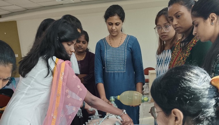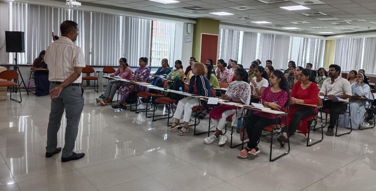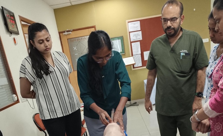 The second day’s session began with Dr. Vimal Krishnan, Additional Professor, Department of Emergency Medicine, KMC Manipal, on the topic of trauma assessment. He led an engaging and dynamic session, seamlessly integrating theoretical concepts with practical, scenario-based learning. Ms. Teena Sharon, Nurse Practitioner in Critical Care, Kasturba Hospital, Manipal, presented a detailed session on organ transplantation, including the medical procedures, ethical considerations and patient care. A session on POCUS for shock was presented by Dr. Vishal Shanbhag, Associate Professor, Department of Critical Care Medicine, KMC Manipal, with several real-life examples suggesting that it provides valuable knowledge and practical insights into using ultrasound technology to diagnose and manage shock effectively. Another experiential session on ICD insertion was done by him to enhance the skills of the participants. In the afternoon, workstations on ultrasound simulation, ECG interpretation, drug calculation, and chest x-ray interpretation were conducted by Dr Vishal Shanbhag, Associate Professor, Department of Critical Care Medicine, KMC Manipal, Dr Melita Sheilini, Associate Professor, MCON Manipal, Dr. Soumya Christabel, Assistant Professor (Sr scale), MCON Manipal; and Dr. Shalini G. Nayak, Assistant Professor (Sr scale), MCON Manipal, respectively.