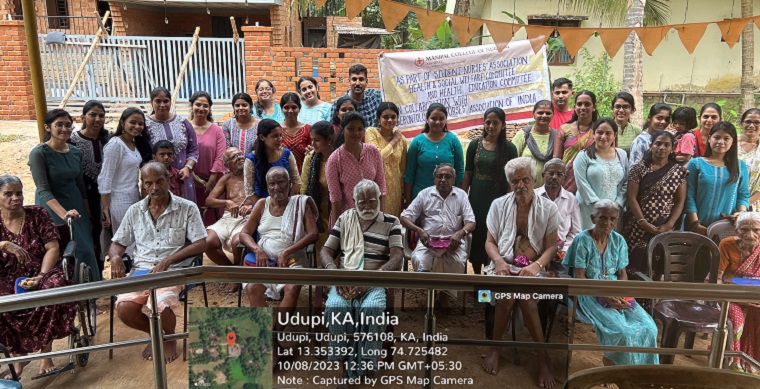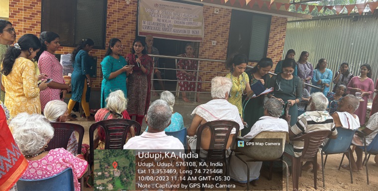 The Health and Social Welfare Committee and the Health Education Committee of Students Nurse’s Association 2023-2024 in association with the Gerontological Nurse’s Association of India, Manipal College of Nursing Manipal, MAHE, Manipal organized an “Old age home visit” at Shree Krishna Vrudhashrama at Moodubettu, Kodavoor, Udupi on 8th October 2023, from 10.30 am to 12.30 pm. Ms. Shreya Shetty, IV Year BSc Nursing student welcomed the gathering and the program was continued by seeking blessings from the almighty with a prayer song by Ms. Vina Tina D Souza and Ms. Lisa Aslin Mascarenhas, IV year BSc Nursing students and the members of Health Education Committee. Group song and group dance performed by the members of the Health and Social Welfare Committee. The health talk was delivered by Mr Pradeep Panduranga Nayak, II year PBBSc Nursing student, Ms Shreya Shetty and Ms. Vina Tina D Souza IV year BSc Nursing students. Blood pressure and Random blood sugar assessment was done followed by games organized for the participants. Prize distribution to the winners of different games was done. Refreshments and gifts were distributed and the program was concluded with words of gratitude expressed by Ms. Jhanavi Mathur, IV year BSc Nursing student, a member of the Health Education Committee. A total of 20 participants benefitted from the program. Twenty students and 8 faculty members were involved in the program. The program was well appreciated by the participants and Ms Nagaratna Patil, incharge of the Shree Krishna Vrudhashram. She also thanked the Manipal College of Nursing Manipal, MAHE, Manipal for organizing a very beneficial program for the inmates of the ashram. The session contributes to SDG: Goal 3- Good health and wellbeing.