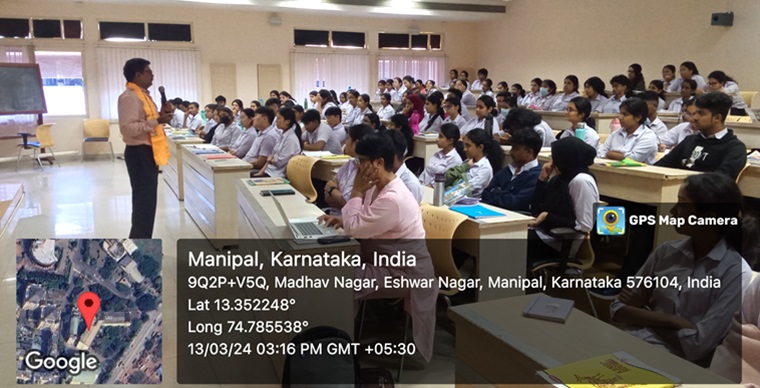 Manipal College of Nursing Manipal organised an awareness session on the topic 'Electoral Voting' on March 13, 2024, between 3.00 pm and 3.40 pm at the Basic Science building, 3rd floor, LH2, MAHE, Manipal. Dr. Elsa Sanatombi Devi, Professor, Manipal College of Nursing, Manipal, introduced the resource person, Dr. Balakrishna S. Maddodi, Associate Professor, Department of Civil Engineering, MIT. He sensitized the students to be responsible citizens. All the youth and citizens of the country need to enrol their names in the electoral list for voting, and Systematic Voter’s Education and Electoral Participation (SVEEP) is controlled by the District Administration. He also emphasized viewing the website for Form No. 6 Election Commission website which each person needs to fill out and submit to the electoral committee. He also spoke about the importance of the voting system, its benefits, and educating others to vote to bring about change in our society by electing good leaders. “Mera Pehla Vote Desh ke Liye” for first-time voters was narrated. He also emphasized creating awareness through social media, skits, and blogs to inculcate good practices among people as responsible citizens. He encouraged students to cast votes, publicize them, and create mass awareness. Dr. Maddodi also invited students to participate in the SVEEP program. Oath-taking was led by Ms. Anna Maria Varghese. Dr Elsa Sanatombi Devi, Professor, Department of Medical-Surgical Nursing and convener for the Electoral Literacy Club MCON, coordinated the session and delivered the vote of thanks. A total of 125 students were present for the session.