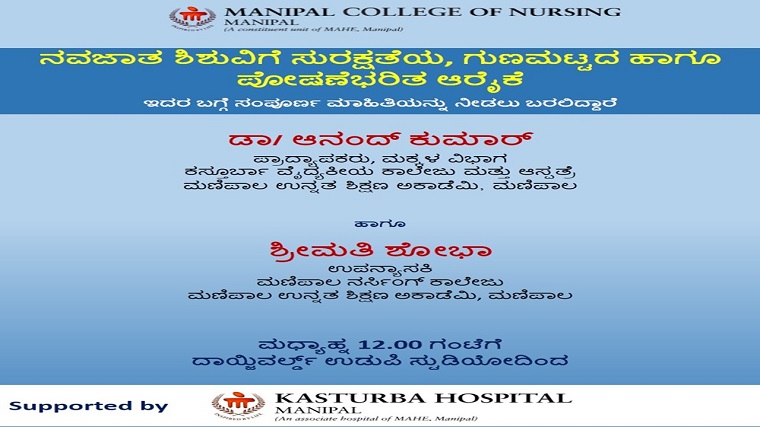 The Department of Obstetrics & Gynecological (OBG) Nursing and the Department of Child Health Nursing, Manipal College of Nursing (MCON), Manipal Academy of Higher Education (MAHE), Manipal observed the ‘Newborn Week’ from 15 to 19 November 2021 based on the theme “'Safety, quality and nurturing care - birth right of every newborn." The aim of celebrating ‘Newborn Week’ is to create awareness and sensitize the general public, students and health care professionals regarding quality and essential newborn care. Based on the theme, number of activities like an awareness program on essential newborn care, poster competition on the theme for the faculty and students, radio program etc. were conducted.