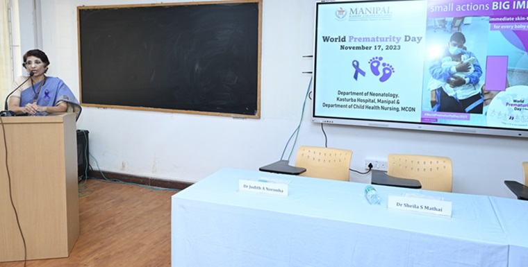Dr Judith A Noronha, Dean, MCON, in her address, stressed that temperature regulation/ warmth, adequate nutrition and feeding and prevention of infection is the key to care the premature babies. She also emphasized that care, compassion and commitment of Nurses are essential for providing quality care and preventing complications. She congratulated the nurses for their service to the smallest of smallest and Dr Yashoda for the commitment and dedication in caring premature babies and initiating Developmentally supportive care in NICU.