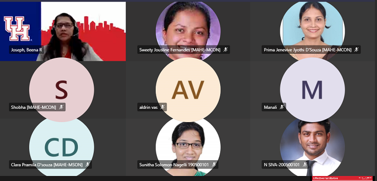 Department of Fundamentals of Nursing, Manipal College of Nursing, Manipal Academy of Higher Education, Manipal organized a Guest Lecture on “Facilitating high-quality virtual simulation” on September 30, 2020, between 4.00 pm to 5.00 pm for faculty members through Microsoft Team Platform. Dr Beena Joseph, Clinical Assistant Professor and Clinical Coordinator, University of Houston, College of Nursing, Houston, Texas, USA, and adjunct faculty, MCON, MAHE Manipal, was the resource person.