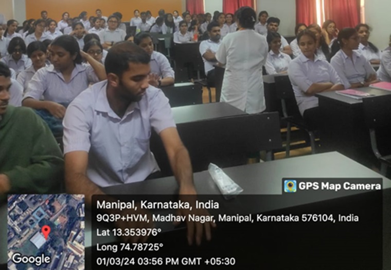 A session on “Stress Management” was organized by the Health and Social Welfare Committee of the Student Nurses Association, Manipal College of Nursing, MAHE, Manipal, on March 1, 2024, between 04.00 pm and 05.00 pm for the fifth semester BSc Nursing students. Dr. Savitha Prabhu, Assistant Professor-Senior Scale, Department of Psychiatric (Mental Health) Nursing, Manipal College of Nursing, MAHE, was the resource person. The session aimed to equip the students with effective stress management tools for creating a healthier academic environment. The students were made to practice relaxation techniques to reinforce the knowledge gained. The awareness session left a lasting impact on the students, empowering them with valuable skills to navigate and mitigate stress in their academic and personal lives. Around 97 students attended the session. The session contributes to SDG 3: good health and well-being.