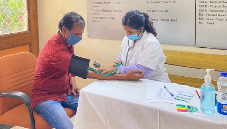 As part of World Diabetes Day, the Department of Medical-Surgical Nursing, Manipal College of Nursing, MAHE, Manipal has conducted the ‘Diabetes Screening and Health Education’ program on November 14, 2021, at the Ground Floor of MCON from 9:00 am. The II year MSc Nursing - Critical Care Nursing and Cardiovascular and Thoracic Nursing speciality students were part of the program. The participants were the general public. After the initial check of height, weight and BMI, the participants were guided to the counter where the blood pressure and Random Blood Sugar was checked. Every participant was given the Health Check Cards with their brief identity. All those who came for health check-ups were given health education which was customized to the nondiabetics and diabetics focusing on the risk factors, clinical manifestations, complications and management including lifestyle modifications, foot care and medication adherence. Those who are diabetic and are on insulin therapy were reiterated on the technique of insulin administration and tips to be followed for the safe administration of insulin and prevention of insulin-induced complications.