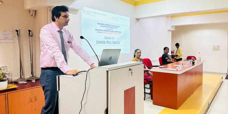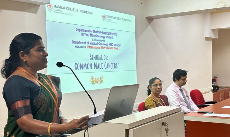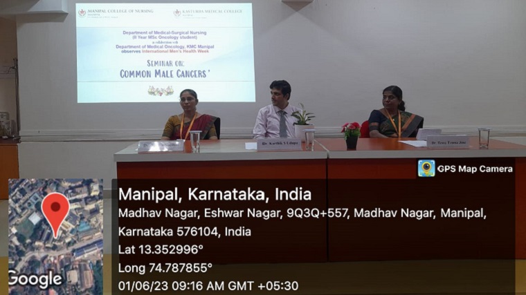 Department of Medical-Surgical (Oncology) Nursing of Manipal College of Nursing, MAHE, in collaboration with the Department of Medical Oncology, Kasturba Hospital, MAHE, observed “International Men’s Health Week” through a half-day seminar on Common Male Cancers. The seminar’s theme was “Early recognition leads to effective management”. The good health and well-being of SDG 3 goal was aimed at attaining by this seminar