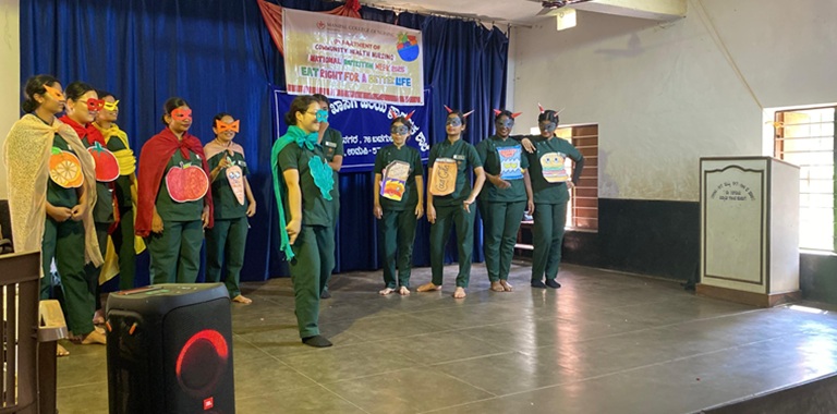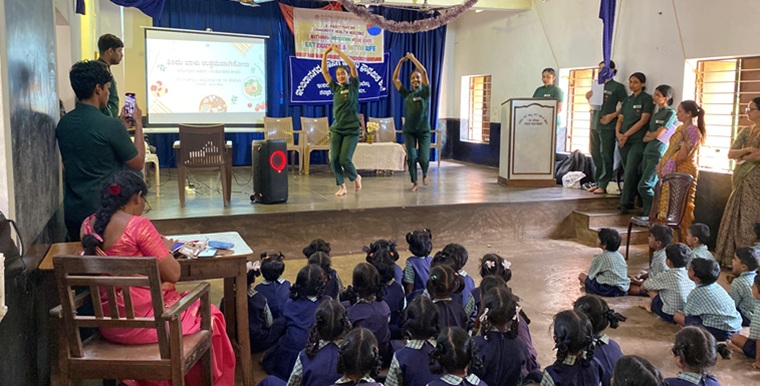 The fifth semester BSc Nursing students and the Department of Community Health Nursing in association with NSS unit of Manipal College of Nursing organized an awareness program as part of the “National Nutrition Week-2025” on the theme “Eat Right for A Better Life” on 11thSeptember 2025 between 2.00 to 3.30 pm at Aided Higher Primary School (AHPS), Indira Nagar, Kukkikatte, which was focusing on SDG-3 Good health &wellbeing.