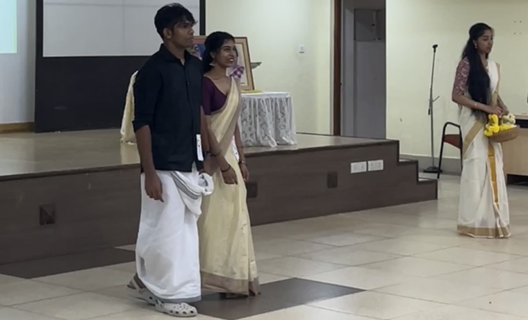 Thiruvathira, a mind-blowing performance by Ms. Bonita and her team, marked the beginning of the Onam celebration. Following an Onapattu conducted by Ms. Denna and the group, Maveli entered and gave an Onam address. The Mohiniyattam performance by Ms. Meenakshi and Bonita was followed by the Sreeman and Sreemathi competition. Ms. Diya George, a fifth-semester BSc Nursing student, and Mr. Mathews, a third-semester student, grabbed the titles of Sreemathi and Sreeman, respectively. Students in their fifth semester performed a group dance to cap off the occasion. Ms. Angel Jossie, the cultural committee chairperson, cast the vote of thanks to the audience and the participants. We then conducted a tug-of-war competition, with fifth-semester BSc Nursing students emerging victorious, and students received refreshments. The teachers' day celebration and the Onam celebration were a happy and captivating occasion for the audience.