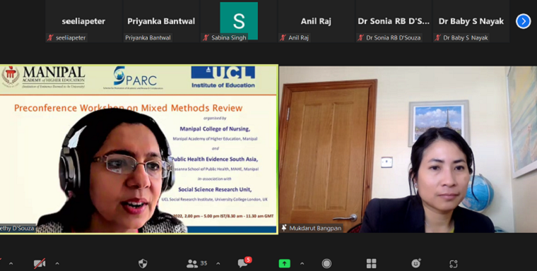 The SPARC funded pre-conference workshops and international conference were organized by Manipal College of Nursing, Manipal Academy of Higher Education, Manipal and Public Health Evidence South Asia, Prasanna School of Public Health, MAHE, Manipal in association with Social Science Research Unit, UCL Social Research Institute, University College London, UK from 15th March 2022 to 17th March 2022.