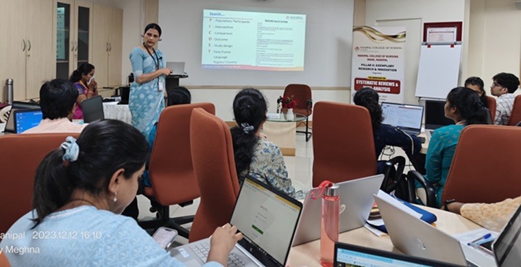 Pillar II: Exemplary Research and Innovation, Manipal College of Nursing (MCON) Manipal organized a workshop on ‘Systematic Reviews and Meta-Analysis’ from December 12th to 13th, 2023, at the Medical Education Department classroom, MAHE. Forty-eight participants attended the workshop, including faculty members and research scholars from different institutions in India. The workshop aligned with Sustainable Development Goal 4, Quality Education.
