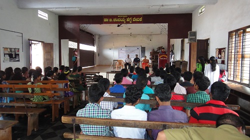 “Connect, Communicate, Care" was chosen to be this year’s theme. These three words are at the heart of suicide prevention. Fostering connections, open communication and caring attitude are important in dealing with suicide. In order to generate awareness regarding this aspect The World Suicide Prevention Day 2016 was observed at Vishnumurthy High school, Kodibettu on 20.09.2016 between 2.00 pm and 4.00 pm. Ms. Teena Joyce Castelino, Second year PBBSc Nursing student, Manipal College of Nursing, Manipal addressed the gathering by introducing the theme of the day. She also emphasized on various strategies to prevent suicide.