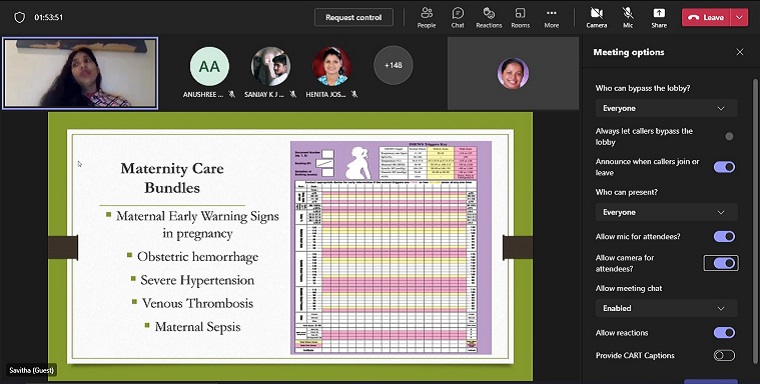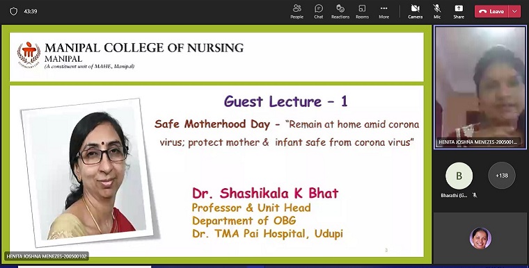 Department of Obstetrics & Gynecological Nursing, Manipal College of Nursing, Manipal Academy of Higher Education organized one-day guest lecture series conducted virtually as a part of the Safe Motherhood 2022 celebration through the Microsoft teams platform. The session began at 2 pm, and around 160 participants attended the session. The moderator welcomed the participants and introduced Dr Shashikala Bhat, the speaker for the first session.