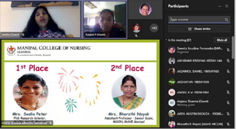 The sessions were concluded after discussing the doubts raised by the participants. On 11th April 2022 Poster competition was Inaguarated by Dr Judith A Noronha, Dean, Manipal College of Nursing Manipal, and the posters were evaluated by Dr Binil V, Associate Professor, Department of Psychiatric (Mental Health) Nursing and Dr Soumya Christabel, Assistant Professor Senior scale, department of Medical-surgical Nursing MCON Manipal. The moderator announced the prize winners for the poster competition conducted as part of the Safe motherhood day. Ms Seelia Peeter, PhD scholar, MCON Manipal bagged the best poster award and Mrs Bharathi Nayak, Asst professor Senior Scale, School of Nursing Manipal, bagged the second best poster. There was a total of 17 posters and the participation was by undergraduates, Postgraduates, PhD scholars and faculties of MCON Manipal. Mrs Sweety Fernandes, Assistant Professor, Department of OBG Nursing, MCON, MAHE, Manipal (Convenor) gave the vote of thanks and closing remarks for the program.