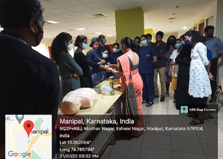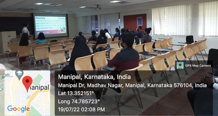 Manipal College of Nursing conducted Summer School Programme 2022 on “Medical Emergency and First Aid” organized by MAHE Student Research Forum under the aegis of Directorate of Research, MAHE, Manipal from July 19 to 21, 2022, from 2.00 pm to 4.00 pm.