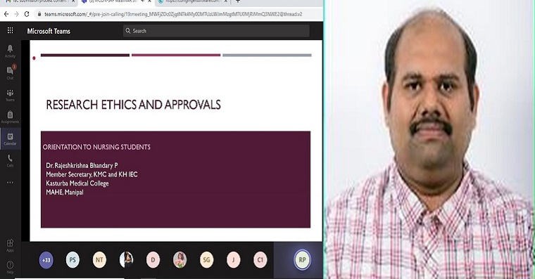 The first session of the webinar series was held on 12 December 2020. Ms Clarita, a PhD Scholar was the moderator for the session. Dr Rajeshkrishna Bhandary P, Faculty, KMC, Manipal was the resource person. He deliberated on the process for applying for IEC clearance for the clinical research projects. He also deliberated on the ‘Do’s and Don’ts’ when submitting research projects to the IEC. Appropriate time was allotted to the participants for the question-and-answer session. Various questions pertaining to the ‘Informed Consent’ and research project submission were clarified by the participants. A total of 42 students attended the session, which included faculty members, PhD Scholars, undergraduates, postgraduates and the MPhil Nursing students.