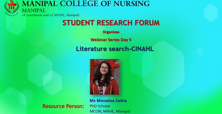 Manipal College of Nursing (MCON) – Student Research Forum (SRF) organized series of webinars on the theme “Inculcating research culture in students” from 12 December 2020 to 15 January 2021. The planning of the webinar series was done after an initial need assessment. After the need assessment, Ms Edlin, PhD Scholar, Department of Child Health Nursing, MCON, MCON-SRF president, Ms Clarita, PhD Scholar, Department of Medical-Surgical Nursing Secretary – MCON-SRF, and the MCON-SRF team under the guidance of Dr Sonia R.B D’Souza, Professor and HoD, Department of Obstetrics and Gynaecological Nursing, MCON, the MCON-SRF faculty advisor, planned the program.