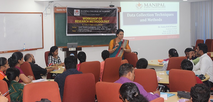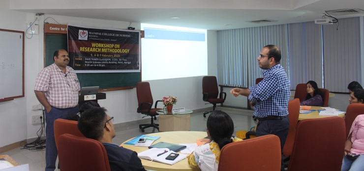 Manipal College of Nursing, MAHE, Manipal, organized a three days workshop on ‘Research Methodology’ from 5th to 7th February 2020 at CCEID, 5th floor, Health Sciences Library building, MAHE, Manipal. This workshop was organized by I Year MSc (Nursing) students in coordination with the Department of Mental Health Nursing. A total of 43 participants had registered from various disciplines like Nursing, Medicine, Pharmacology, Architecture and Allied Health Sciences.