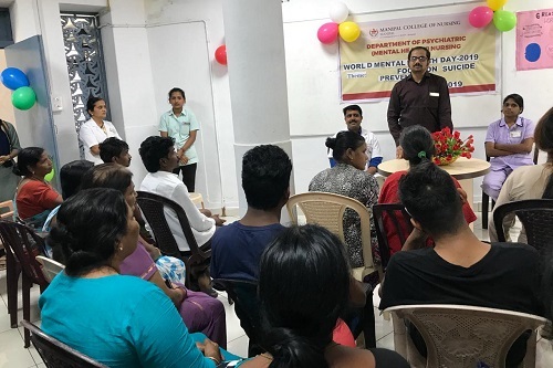 Health awareness program on promotion of mental health and prevention of suicide was conducted on 14.10.2019 for rural population of Kandlur Panchayat. Dr. Latha, Medial Officer, Kandlur PHC presided over the program. She informed the gathering to make use of mental health facilities available at PHC. Mr. Praveen A, Lecturer, KMC, Manipal explained about the theme of World Mental Health day. Mrs. Savitha, Assistant Professor, MCON, Manipal briefed on suicide prevention.