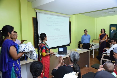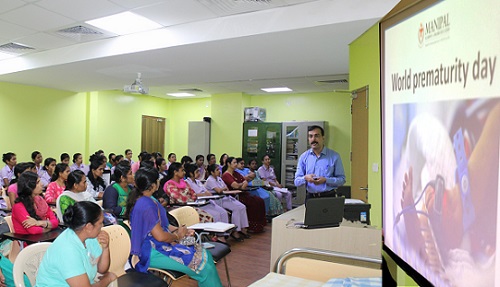 Dr Judith Noronha, Associate Dean, Dr Baby S Nayak, Head of Department of Child Health Nursing, Dr Jayashree, Dr Apurv Barche and faculty members from Manipal College of Nursing and Pediatrics department were also present. The day ended with developmental screening and follow up health check-up of premature babies. The total beneficiaries were 80 mothers of premature babies and 100 health care professionals.