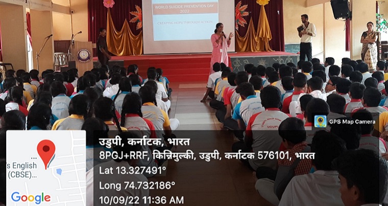 A school-based awareness program on “Prevention of Suicide: Creating Hope through Action” was organised at St. Mary’s English Medium School, Kannarapady, Udupi on 10.9.2022 between 11:00-12:00 noon. Around 150 school children along with six class teachers attended the program. Mrs. Flavia Sharlet Noronha, Assistant Professor, Department of Psychiatric (Mental Health) Nursing, MCON, MAHE was the resource person for the program. She spoke on the warning signs, especially among the students, myths and facts about suicide, and simple preventive measures. The 4th year BSc Nursing students led by Ms Maithrayee Sen and Mr. Sohan Fernandes played a mime on causes and prevention of suicide in our society. This mime was well appreciated by the school children and their teachers.