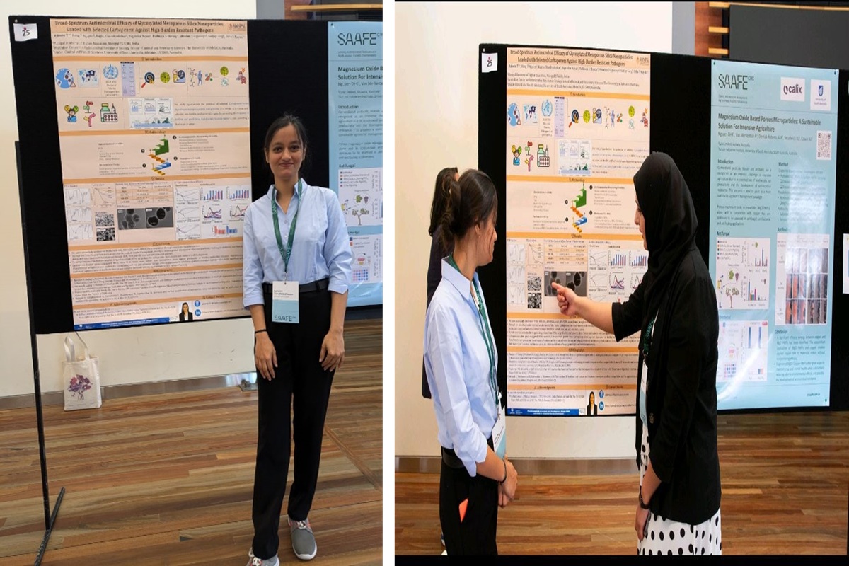 Ms. Ashwini T, an ICMR Senior Research Fellow in the Department of Pharmaceutics at the Manipal College of Pharmaceutical Sciences, MAHE, Manipal, presented a poster that was recognized as one of the ‘Top 3’ in the Scientific Poster Presentations at the 2024 SAAFE CRC AMR Solutions Summit, held on 17 & 18 September 2024 in Adelaide, South Australia.