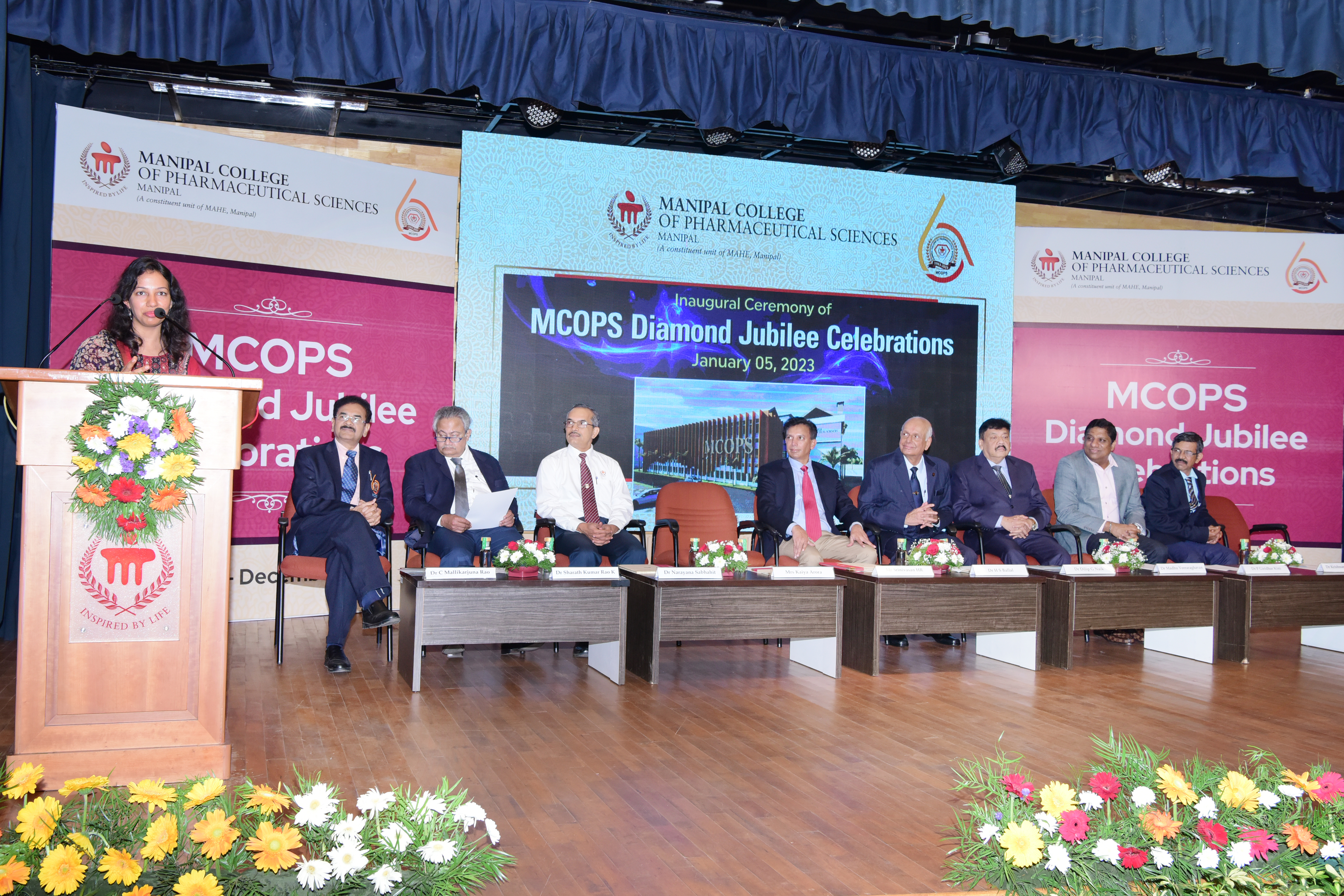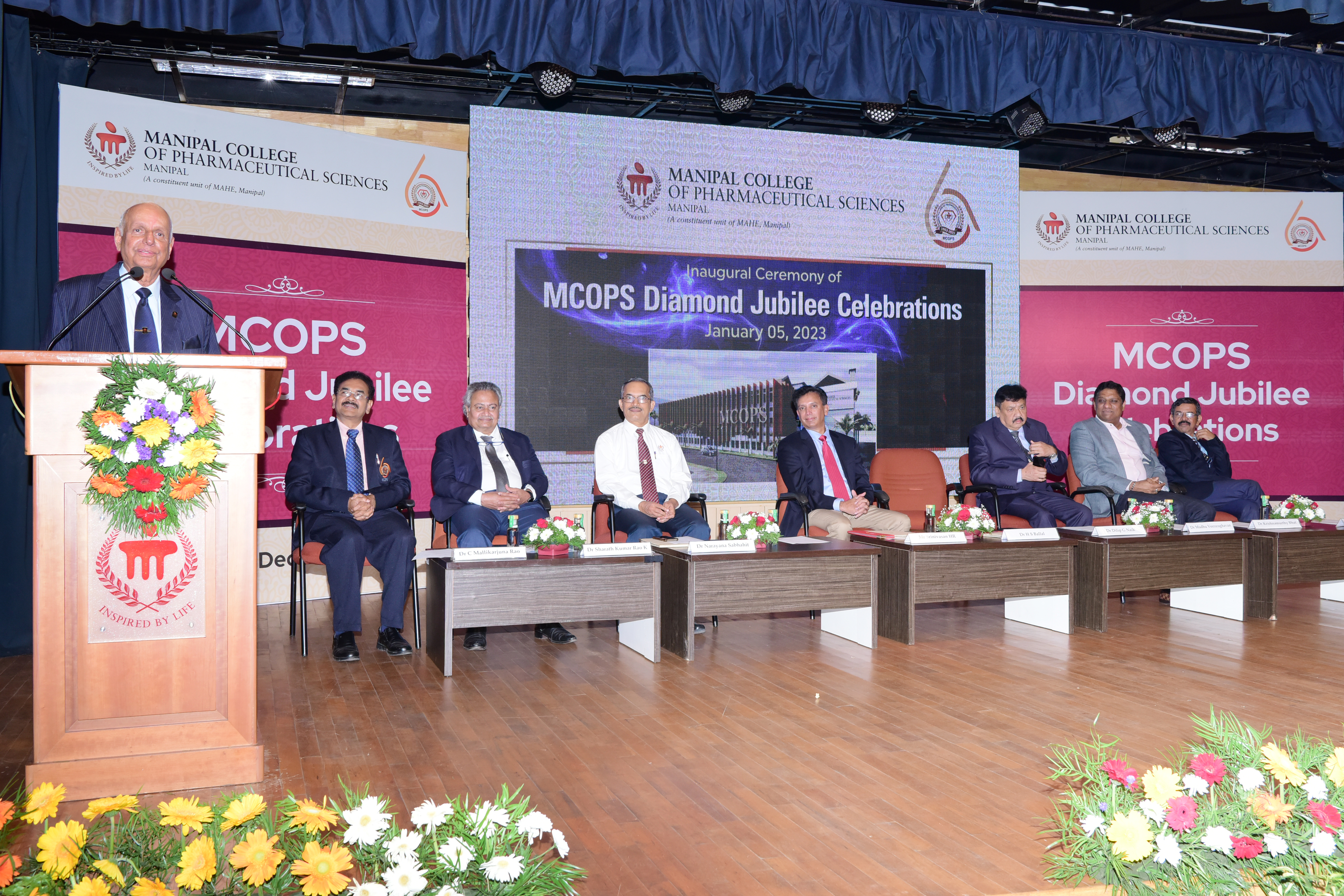 Year 2023 marks a major milestone for Manipal College of Pharmaceutical Sciences (MCOPS) as it celebrates its Diamond Jubilee. Year-long celebration flagged off on Thursday, 5 January 2023 at Dr TMA Pai Hall, Manipal. Diamond Jubilee Celebration was inaugurated by Mr HR Srinivasan, Chief Executive Officer, Navitas Life Sciences. The function was presided by Dr HS Ballal, Pro Chancellor, MAHE.