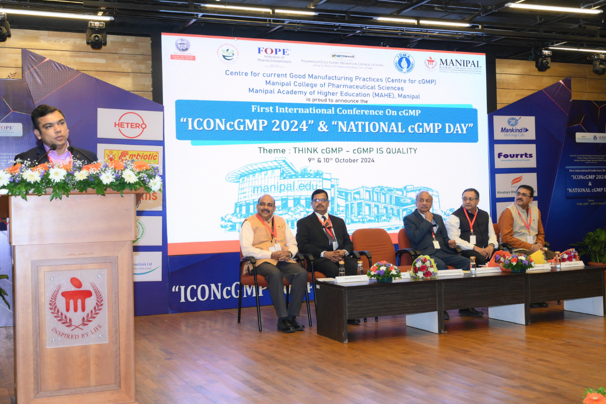 Manipal, October 13, 2024: The 2nd National cGMP (current Good Manufacturing Practices) Day was celebrated with great enthusiasm and fanfare at the TMA Pai Auditorium, MAHE, Manipal, with the presence of esteemed industry stalwarts and university officials. The event, organised by the Centre for cGMP at Manipal College of Pharmaceutical Sciences (MCOPS), highlighted the importance of adhering to pharmaceutical quality standards and celebrated advancements in pharmaceutical education and practice.