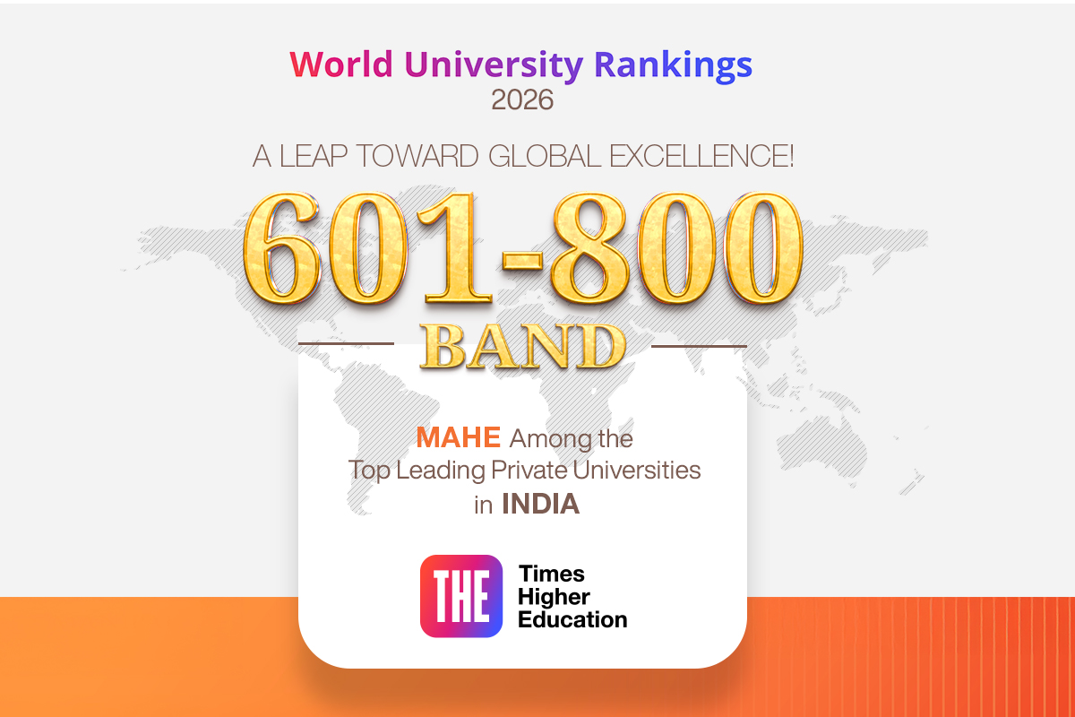 – Manipal Academy of Higher Education (MAHE), an Institution of Eminence Deemed to be University, has achieved a significant milestone in the Times Higher Education (THE) World University Rankings 2026, advancing from the 801-1000 band (2025) to the 601-800 band (2026). This notable improvement reflects MAHE's strengthened research ecosystem, enhanced teaching environment, and growing global reputation.