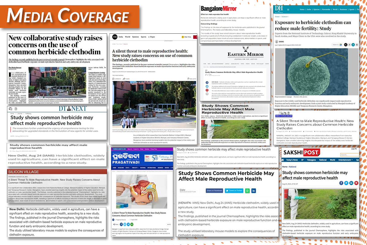 In a significant new collaborative effort, researchers from Kasturba Medical College, Manipal Academy of Higher Education, Manipal, and Yenepoya Research Center, Mangalore, have unveiled alarming insights into the potential impact of the widely used herbicide clethodim on male reproductive health. The findings, recently published in the esteemed journal "Chemosphere", highlight the risks associated with clethodim-based herbicide exposure on male reproductive function and early embryonic development. The study utilised a laboratory mouse model to explore the consequences of clethodim exposure. The results of this study have raised significant concerns about male reproductive health, revealing a spectrum of effects, including a reduction in testicular weight, a decrease in germ cell population, lower levels of serum testosterone, abnormalities in sperm, and compromised preimplantation embryo development.
